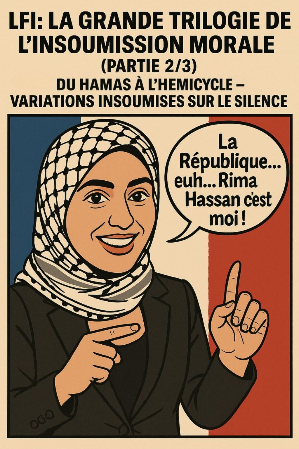 Continuer à lire→: LFI, La grande trilogie de l’insoumission morale (Partie 2/3) : Du Hamas à l’hémicycle – variations insoumises sur le silenceIls sont entrés dans l’Histoire à reculons. À la file indienne. Le 7 octobre 2023, pendant que le monde encaisse un massacre, LFI s’installe dans un silence méthodique. Pas de condamnation. Pas d’ennemi. Juste une “offensive armée” décrite comme on évoquerait une dégradation de muret. Le mot “terroriste” ? Éjecté.…