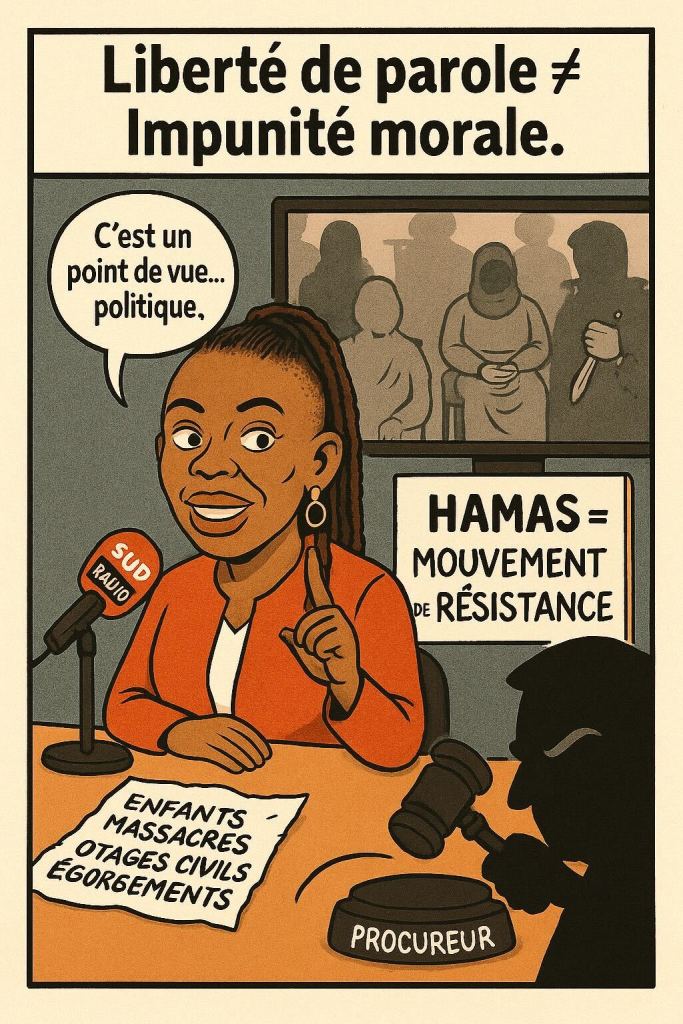 Le 23 novembre, dans l’émission « Paroles d’honneur« , Soudais revient sur la polémique, hilare. Et là, entre deux gloussements de soulagement stratégique, elle enfile les petites piques comme des perles : Meyer Habib ? Caroline Yadan ? Cibles de ricanements. L’interdiction d’Abou Daka ? Motif de moquerie. À l’entendre, l’idée même de s’indigner relève de la comédie, et leur propre irresponsabilité devient une performance d’audace.
