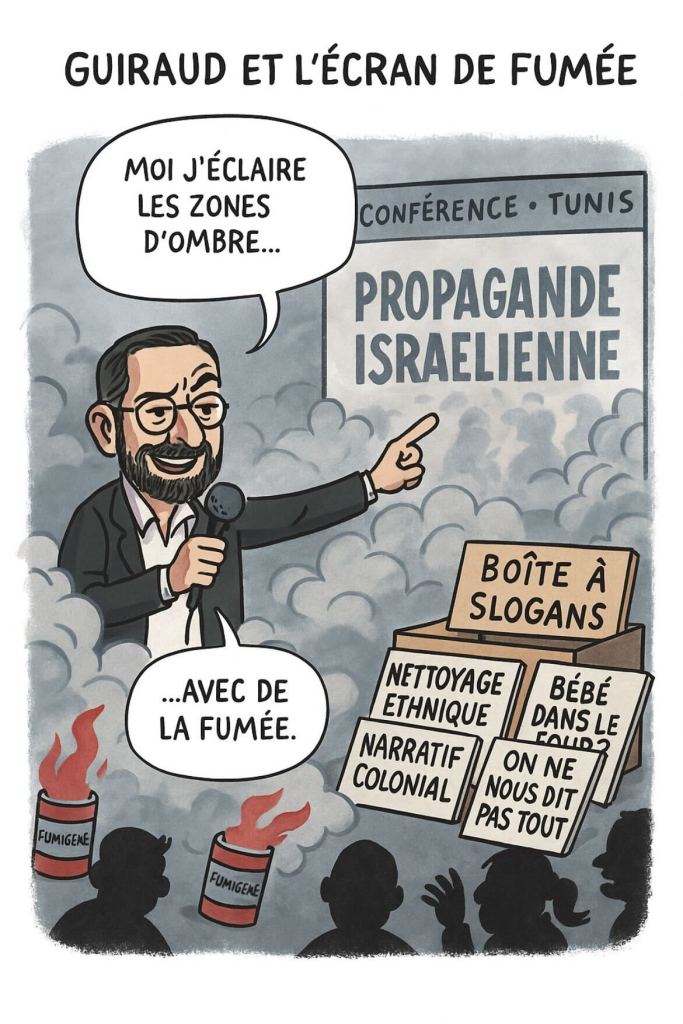 10 novembre, Tunis. En conférence, le député insoumis balance, sourire en coin : « Le bébé dans le four, ça a été fait par Israël, la maman éventrée, ça a été fait par Israël ! » Une déclaration flanquée d’un air sarcastique, censée dénoncer la « propagande de guerre ».