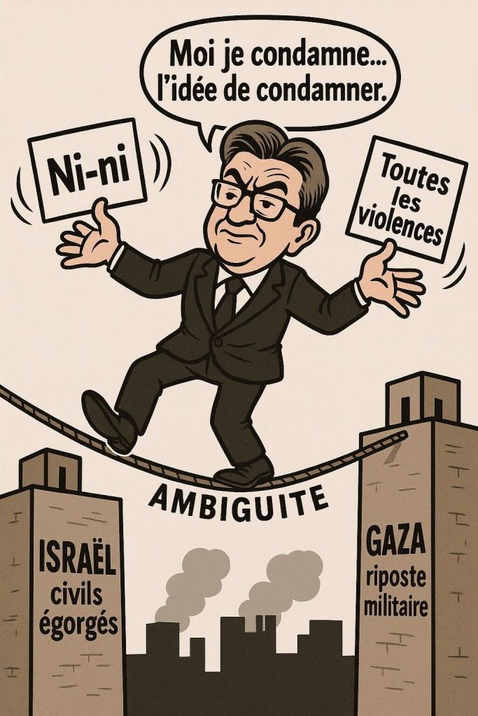 Jean-Luc Mélenchon, fidèle à sa stratégie du dos-à-dos moral, se contente de tweeter un équilibrisme verbal : il déplore « toutes les violences déchaînées contre Israël et en Palestine ». Une façon de mettre sur le même plan des civils égorgés et des bâtiments bombardés en représailles. Le bon vieux réflexe du ni-ni, cette équivalence paresseuse où tout se vaut et rien ne choque vraiment.