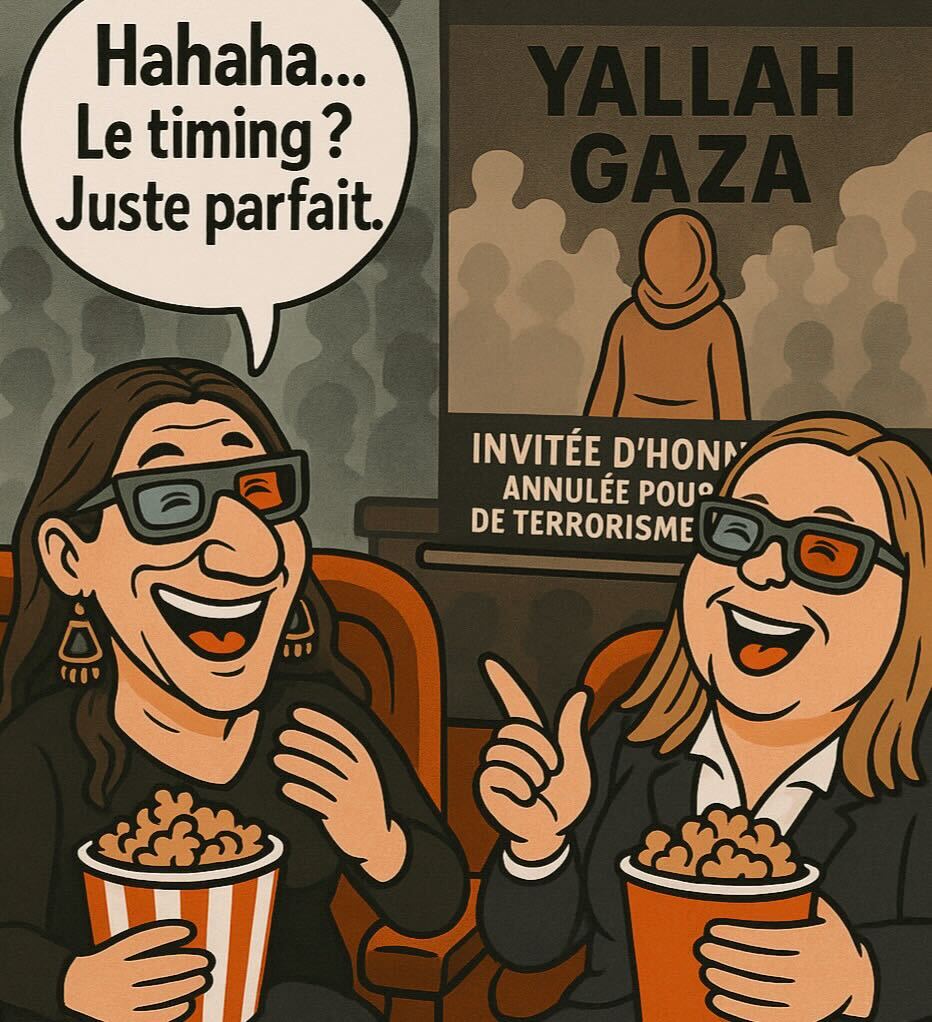 Les invités ? Une brochette engagée, dont Mariam Abou Daka, figure du FPLP – organisation classée terroriste, mais qu’on préfèrera ici appeler « militante », pour des raisons de confort sémantique. Devant le tollé, la projection est repoussée sine die.